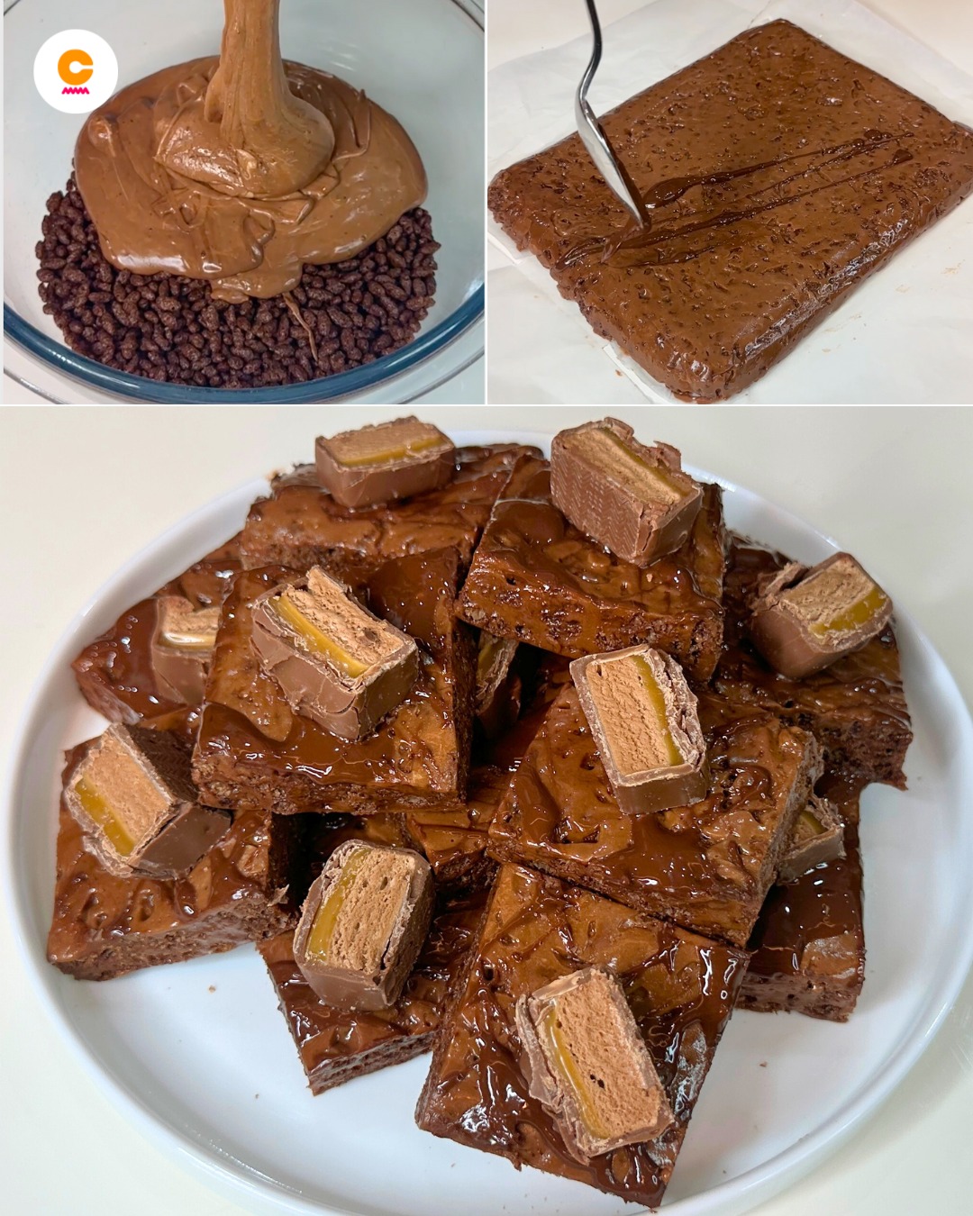Aggiungi uno strato di caramello salato sulla base di riso soffiato prima di versare il cioccolato per un dolce ancora più goloso.